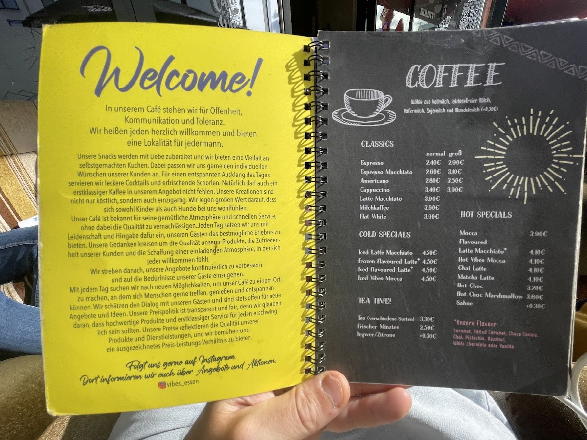 Welcome to Vibes Coffee & Bar, a delightful café located in the heart of Essen at Meyer-Schwickerath-Straße 63. This charming spot is celebrated for its exceptional coffee, handmade cakes, and inviting atmosphere. As you step inside, you'll be enveloped by a hipster vibe, enhanced by cozy seating—both indoors and outdoors for sunny days. Notable highlights from the menu include delicious waffles and rich cheesecakes, meticulously crafted to satisfy your cravings. With friendly staff members ready to cater to your needs, guests rave about the attentive service that complements the delectable offerings. Whether you're looking for a casual breakfast or a relaxing afternoon break, Vibes Coffee & Bar delivers a refreshing experience. Numerous patrons have claimed this gem is well worth the journey, making it a must-visit spot for both locals and visitors alike. Indulge your senses and discover your new favorite café today!